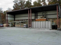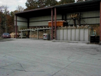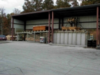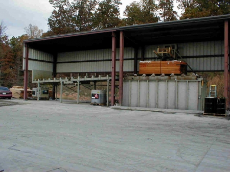 The automatic dip tank system on the right was based on a 20x10x8 ft tank for dipping double lumber bundles. This system can also be ordered for single pack systems.
